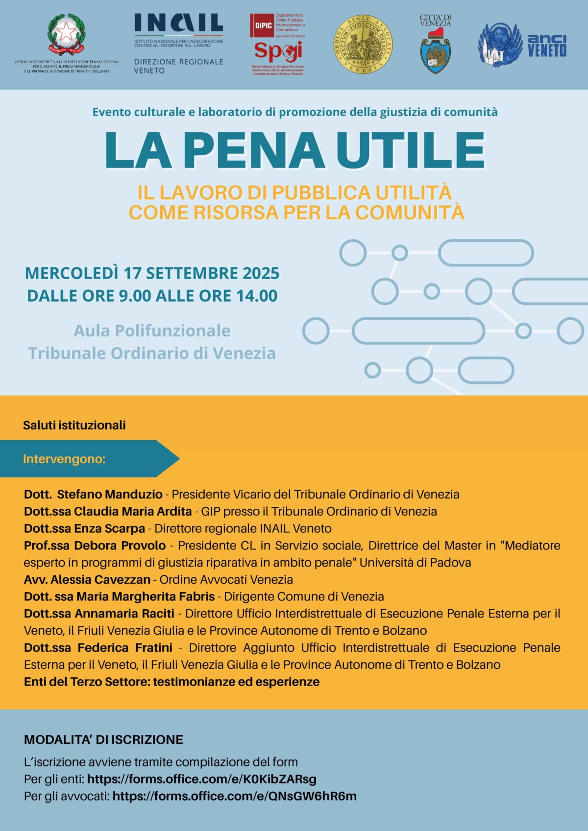 La Pena Utile: il lavoro di pubblica utilità come risorsa per la comunità – Tribunale di Venezia, 17 Settembre 2025